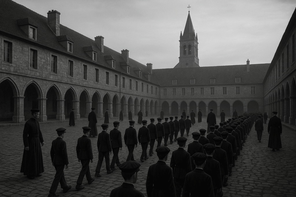 In the aftermath of World War I, France was rebuilding not just its cities and economy, but its sense of moral order. Catholic education played a crucial role in this reconstruction, drawing on a centuries-old tradition that had evolved by the 1920s but maintained its fundamental character: total institutional control over students’ lives. These boarding schools operated as self-contained worlds, often located in remote areas. Students lived completely cut off from the outside world, seeing their families only during holidays. The isolation wasn’t accidental, it was designed to maximize the school’s influence over the boys’ moral and intellectual development.